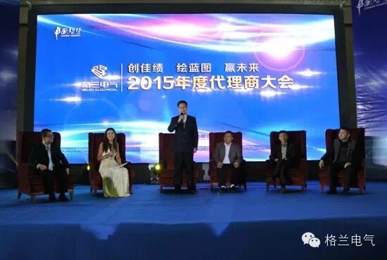 2015年4月8日,格蘭電氣在浙江嘉興召開“創(chuàng)佳績、繪藍圖、贏未來”代理商大會。格蘭電氣董事長陳國祥、格蘭企業(yè)高管和核心代理商參加了會議。